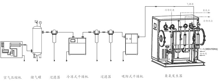 三種臭氧發(fā)生器系統(tǒng)示意圖