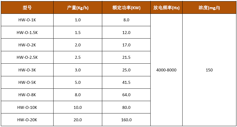 冷卻水量: 2噸/h(每產生1公斤臭氧)