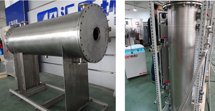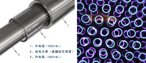 微間隙放電:匯威系列臭氧發(fā)生器的放電介質(zhì)采用的是石英小管,區(qū)別于傳統(tǒng)的玻璃管及搪瓷管等在放電介質(zhì)上涂導電層的做法,石英管內(nèi)套SS316管, 二者同心圓分布,間隙僅0.1-0.3毫米,微間隙設(shè)計工藝使放電面積增大,電源效率提升的同時減小了反應(yīng)腔的體積;解決了放電管因膨脹系數(shù)不同而脫 落導致的臭氧發(fā)生器產(chǎn)量濃度的衰減;降低了維護成本。